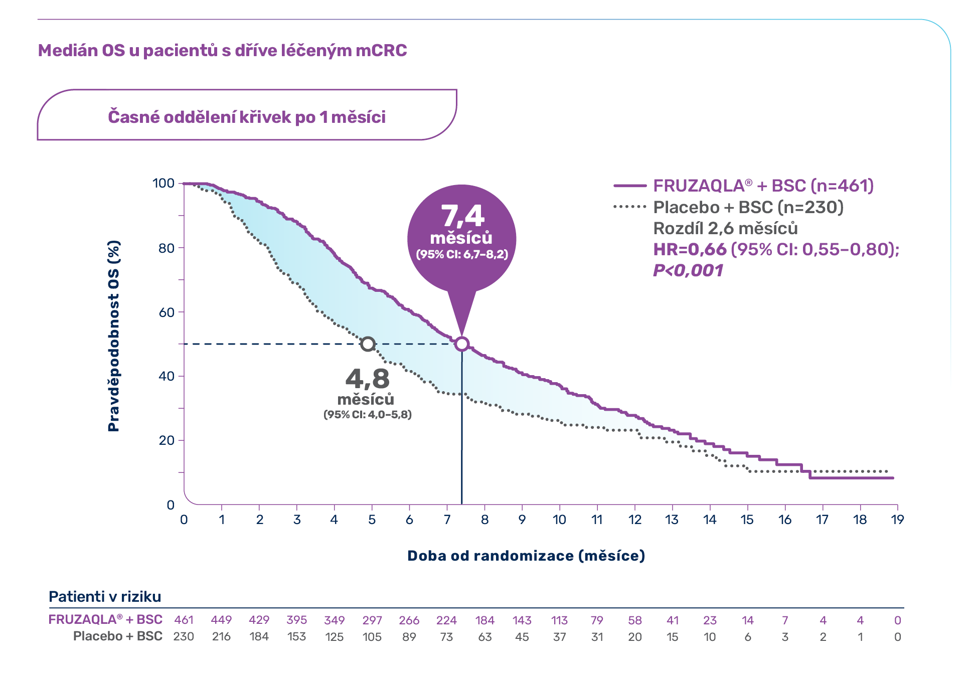 Přípravek FRUZAQLA® prokázal statisticky významný benefit v celkovém přežití (OS)2,5.